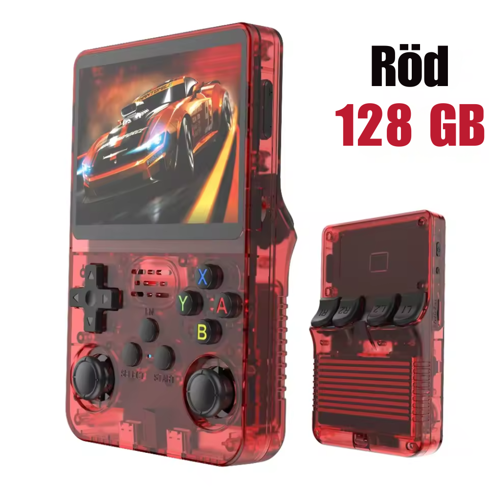 A: En håndholdt spillkonsoll i retrostil med en 3,5-tommers IPS-skjerm som lar deg spille klassikere som NES, SNES, GBA, PS1 osv.